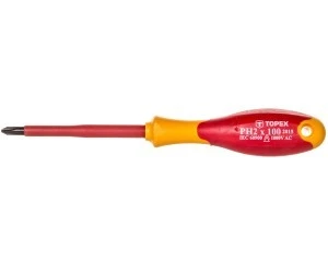 Narzędzie posiada wygodą, dwukomponentową rękojeść, która zapewnia użytkownikowi komfort i wygodę pracy. Długość produktu wynosi 220 mm, długość trzpienia 100 mm, a wytrzymałość napięciowa sięga 1000 V. Wkrętaki o oznaczeniu PH2 służą do odkręcania i przykręcania wkrętów lub śrub o średnicy 3,5 - 5 mm o wgłębieniu krzyżowym. Specjalny otwór w uchwycie można wykorzystać zawieszając narzędzie podczas przerwy w wykonywanych czynnościach. Produkt spełnia normę bezpieczeństwa EN 60900:2005 (U). Firma TOPEX to lider w dziedzinie najwyższej jakości narzędzi i akcesoriów.