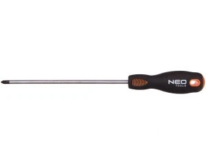 Wkrętak krzyżowy PH2 x 200 mm, CrMo, twardość końcówki roboczej 56HRC, magnetyczna końcówka, trójgraniasty kształt uchwytu, wyprofilowane oparcie dla kciuka, uchwyt pokryty tworzywem TPR odpornym na działanie chemikaliów, olejów mineralnych, smarów