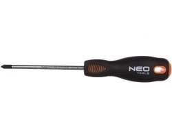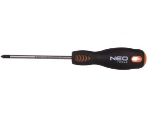Wkrętak krzyżowy PZ1 x 100 mm, CrMo, twardość końcówki roboczej 56HRC, magnetyczna końcówka, trójgraniasty kształt uchwytu, wyprofilowane oparcie dla kciuka, uchwyt pokryty tworzywem TPR odpornym na działanie chemikaliów, olejów mineralnych, smarów