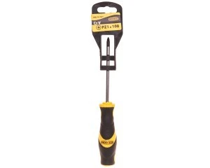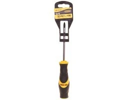 Wykonanie grotu ze stali chromowo-wanadowej zapewnia długą żywotność produktu Dwukomponentowa ergonomiczna gumowana rękojeść zapobiega wyślizgiwaniu się wkrętaka z dłoni podczas pracy
