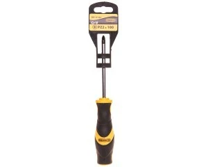 Wykonanie grotu ze stali chromowo-wanadowej zapewnia długą żywotność produktu Dwukomponentowa ergonomiczna gumowana rękojeść zapobiega wyślizgiwaniu się wkrętaka z dłoni podczas pracy