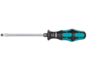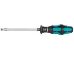 Wkrętak, szczelinowy, z zatrzaskiwaną pokrywą, pomocniczym kluczem imbusowym do kluczy szczękowych i oczkowych, wielkość: 1,2 x 7,0 x 125 mm, uchwyt dwukomponentowy, z ergonomiczną rękojeścią