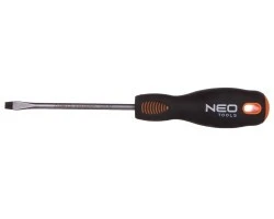 Wkrętak płaski 5.5 x 100 mm, CrMo, twardość końcówki roboczej 56HRC, magnetyczna końcówka, trójgraniasty kształt uchwytu, wyprofilowane oparcie dla kciuka, uchwyt pokryty tworzywem TPR odpornym na działanie chemikaliów, olejów mineralnych, smarów