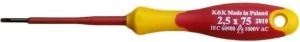 Wkrętak płaski izolowany 1000V 2,5x75 Narzędzia dla elektryka Śrubokręt płaski izolowany 1000V 2,5x75 do pracy pod napięciem