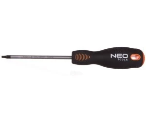 Wkrętak Torx NEO (nr ref. 04-044) o wymiarach T15 x 100 mm. Grot wkrętaka wykonany jest z wyjątkowo wytrzymałej stali chromowo-molibdenowej. Końcówka robocza grota została poddana obróbce cieplnej, dzięki czemu uzyskano odpowiednią twardość i odporność na zgięcia 56 HRC. Wkrętak posiada magnetyczną końcówkę. Trójgraniasty kształt uchwytu z wyprofilowanym oparciem dla kciuka zmniejsza obciążenie dłoni podczas pracy i ułatwia uzyskanie optymalnego momentu obrotowego. Dwumateriałowy uchwyt zapobiega ślizganiu się w dłoni, odporny jest na działanie chemikaliów, olejów i smarów. Jakość narzędzia potwierdzona certyfikatem TUV i 25-letnią gwarancją producenta. Marka NEO spełnia oczekiwania profesjonalistów.