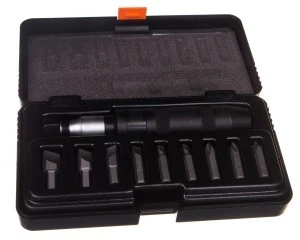 Wkrętak udarowy 1/2"" NEO (nr ref. 04-250) zawiera 10 elementów, w tym 9 końcówek wkrętakowych w popularnych rozmiarach (płaskie, krzyżowe) oraz uchwyt udarowy. Zastosowanie stali stopowej S2 w końcówkach wydatnie wydłuża ich trwałość. Uchwyt z wytrzymałej stali chromowo-wanadowej. Całość dostarczana w praktycznej, plastikowej walizce. Jakość narzędzia potwierdzona certyfikatem TUV i 25-letnią gwarancją producenta. Marka NEO spełnia oczekiwania profesjonalistów.