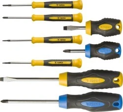 Wkrętaki, zestaw 8 szt., dwumateriałowy uchwyt, płaskie: 2 x 50 mm, 2,4 x 50 mm, 6 x 38 mm, 6,5 x 100 mm, PH0 x 50 mm, PH1 x 50 mm, PH2 x 100 mm, PH2 x 38 mm, magnetyczne końcówki