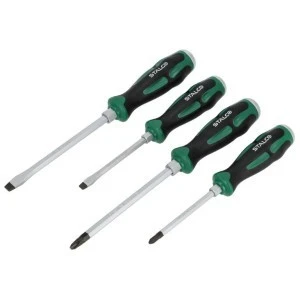 Wkrętaki ślusarskie to trwałe narzędzia potrzebne przy pracach rzemieślniczych. Zestaw STALCO zawiera cztery wkrętaki potrzebne przy realizacji tego rodzaju zadań. Dwa z nich mają zakończenia płaskie, a dwa krzyżakowe typu Philips. Narzędzia mają różne wymiary końcówek roboczych i trzpienie o długości 100 lub 150 milimetrów. Wszystkie wkrętaki ślusarskie STALCO z tego kompletu są wyposażone we wzmocnienie w tylnej części uchwytu. Pozwala ono na pobijanie narzędzia młotkiem. Jednocześnie można go mocno trzymać w dłoni, chwytając za ergonomiczną rączkę z tworzywa sztucznego. Cała konstrukcja trzpienia i końcówki do pobijania jest wykonana ze stali chromowo-wanadowej. To wytop narzędziowy o dobrych parametrach wytrzymałościowych. Wkrętaki są też odporne na uszkodzenia mechaniczne i korozję, dlatego dobrze sprawdzają się w warunkach warsztatowych.
