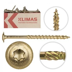 Wkręty do drewna, konstrukcyjne, ciesielskie WKCP wykonane ze stali niskowęglowej pokrytej warstwą ochronną ocynku w kolorze żółtym. Posiadają łeb podkładkowy z gniazdem typu TX oraz specjalną końcówkę wiercącą przeznaczoną do połączeń w konstrukcjach drewnianych.