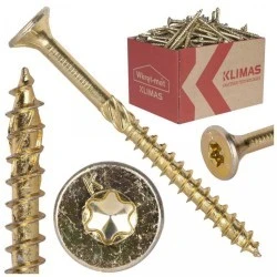 Wkręty konstrukcyjne KMWHT wykonane ze stali węglowej pokrytej warstwą ochronną ocynku w kolorze żółtym. Posiadają łeb stożkowy z gniazdem typu TX oraz specjalną końcówkę wiercącą przeznaczoną do połączeń w konstrukcjach drewnianych. Produkt stosowany jest przede wszystkim do połączeń konstrukcyjnych elementów drewnianych, m.in. litych, klejonych i płyt drewnopochodnych. Praca z nimi to czysta przyjemność, nie wymają wcześniejszego nawiercania. Są zgodne z normą PN-EN 14592:2008+A1:2012.