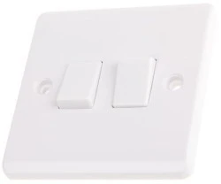 Torebka ze śrubami mocującymi i białymi plastikowymi pokrywkami śrubowymi. Płytki przełączników świateł. Białe płytki świateł jedno- i dwuścieżkowych.