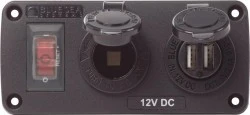 Wodoodporny Panel Blue Sea – Wyłącznik 15A, Gniazdo 12V, Ładowarka USB 2.1A