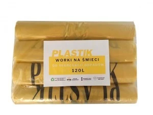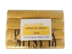 Worki na śmieci w kolorze żółtym do segregacji odpadów z nadrukiem to produkt ułatwiający właściwą segregację odpadów. Zostały wyprodukowane z polietylenu o niskiej gęstości (LDPE), który pochodzi w 100% z recyklingu. Dzięki wykorzystaniu wysokiej jakości surowca, worki są bezzapachowe i mocne, a także dobrze utrzymują swój kolor. Worki są przeźroczyste, co pozwala wstępnie sprawdzić, czy odpady zostały odpowiednio posegregowane bez konieczności wysypywania odpadów. Worki na odpady dostarczane są w rolkach z perforacją, co ułatwia odrywanie i przechowywanie worków. Opakowanie zbiorcze zawiera 4 rolki worków po 25 szt.