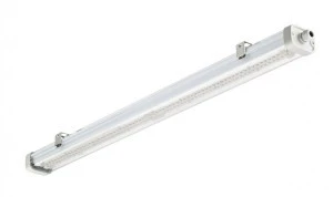 Pacific LED Gen5 Value to innowacyjna, najlepsza w swojej klasie wodoodporna oprawa LED, powszechnie chwalona za optymalną wydajność. Spełnia wysokie wymagania współczesnych gałęzi przemysłu, gdzie panują trudne warunki pracy. Jest to bardzo wytrzymała, kompaktowa i niezawodna oprawa zapewniająca doskonałą jakość światła. Wysoki stopień ochrony mechanicznej (IK08) oraz ochrona przed działaniem wody i pyłu (IP66) w połączeniu z przetestowaną odpornością chemiczną sprawiają, że oprawa Pacific LED Gen5 Value świetnie znosi trudne warunki przemysłu samochodowego, spożywczego i ciężkiego. To wodoodporne oświetlenie można również z powodzeniem stosować w garażach i magazynach. Oferujemy szeroki wybór opcji optyki i strumieni świetlnych. Oprawy Pacific LED Gen5 Value zapewniają doskonałą jakość światła bez artefaktów, o jednorodnej charakterystyce. To daje większą swobodę w projektowaniu optymalnych schematów oświetleniowych, tworzonych w podejściu cyrkularnym, co umożliwia ich modernizację i wydłużenie okresu eksploatacji. Oprawy te można szybko i łatwo zainstalować, co upraszcza prowadzenie kabli i daje swobodę wyboru opcji połączeń i montażu. Są one również atrakcyjne ze względu na dobrą wydajność energetyczną i łatwość konserwacji — przy minimalnych zakłóceniach pracy, nadają się nawet dla wymagających zastosowań. Odkryj Pacific LED Gen5 Value. Wytrzymałe oprawy o optymalnych parametrach do oświetlenia wodoodpornego.