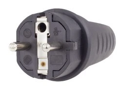 Wytrzymały i zapewniający ochronę gumowy wtyk prądowy przenośny, przeznaczony do montażu na kablu (np. kablach w gumie OW, ONPD)