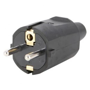 Wytrzymała wtyczka ochronna z możliwością ponownego podłączenia, z centralnym wprowadzeniem kabla, co ułatwia modernizację, naprawę lub wymianę. Produkt jest odpowiedni do użytku w pomieszczeniach zamkniętych.