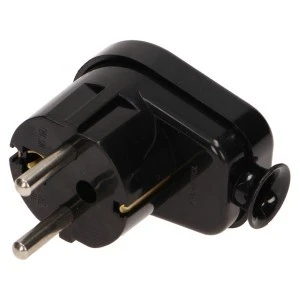 Wtyczka kątowa Uni-Schuko rozbieralna. Dostępne kolory: biały, czarny. Kierunek wprowadzania wtyczki-kątowy. Połaczenie śrubowe,wykonana z tworzywa sztucznego.