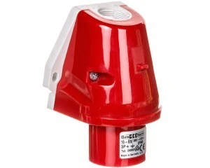 Wtyczka odbiornikowa naścienna Quick-Connect 16A 3P+PE 380 do 415V 6h IP44 50 i 60Hz, Wielkość obudowy wielkość obudowy 90x87, Zadławienie: M25 z góry, Kolor indentyfikacyjny: czerwony RAL 3000 (pokrywa/pokrywa), Izolator/Kontakty: Izolator z PA6 kon