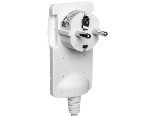 Innowacyjna, super płaska wtyczka ułatwiająca podłączenie urządzeń elektrycznych do gniazdek znajdującymi się za meblami. Wtyczka wykonana jest z najwyższej jakości tworzywa sztucznego. Wyposażona w uchwyty umożliwiające łatwe wyciągnięcie z gniazdka oraz przewód trójżyłowy o długości 1,5.