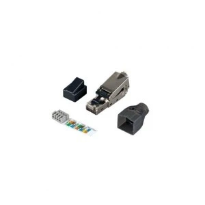 Samozaciskowy wtyk RJ45 zapewnia szybkie i łatwe w montażu, bez użycia narzędzi, połączenie okablowania sieciowego w kategorii 6. W pełni ekranowana obudowa z odlewu cynkowego zapewnia najlepsze właściwości, szczególnie w środowiskach przemysłowych. Zaciski IDC i bardzo niskie rezystancje styków zapewniają wysoką jakość połączenia przewodów instalacyjnych o średnicy do 9 mm i przekroju przewodów zgodnych z AWG22-AWG27.