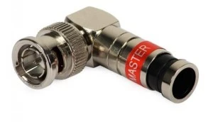 Monolityczne, wykonane z mosiądzu pokrytego niklem, złącze kompresyjne kątowe przeznaczone jest do kabli typu RG-59.