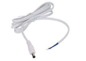 Wtyk DC 5.5x2.1 5A przewód biały 150cm 18awg