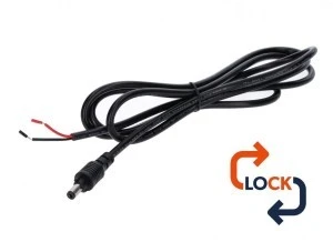 Wtyk DC 5.5x2.1 przewód czarny 150cm 22awg z blokadą