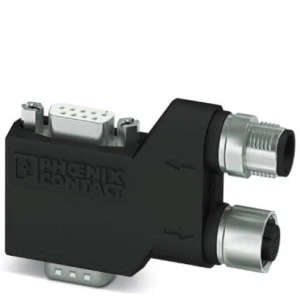 Wtyk D-SUB, 9-pinowy, styki żeńskie, z kołkiem PG-D-SUB, obłożenie styków: 2, 3, 5, 6, 7, 9 dwa przepusty kablowe M12 (kodowanie A) pod kątem 90stopni. System magistrali: CAN, CANopen. Terminator przyłączony oddzielnym terminatorem M12.