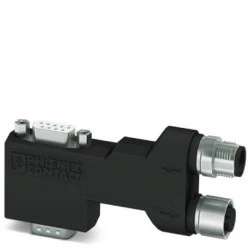 Wtyk D-SUB, 9-pinowy, styki żeńskie, z kołkiem PG-D-SUB, obłożenie styków: 2,3,5,6,7,9 dwa przepusty kablowe M12 (kodowanie A) pod kątem 90stopni. System magistrali: CAN, CANopen. Terminator przyłączony oddzielnym terminatorem M12. Wersja długa kompatybilny z S7.