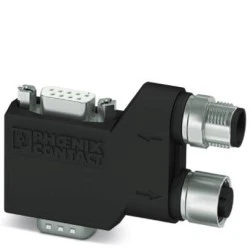 Wtyk D-SUB, 9-pinowy, styki męskie, z gniazdem PG-D-SUB, obłożenie styków: 3, 5, 6, 8 dwa przepusty kablowe M12 (kodowanie B) pod kątem 90stopni. System magistrali: PROFIBUS DP do 12 MBit/s, terminator przyłączony oddzielnym terminatorem M12.