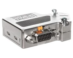 Wtyk D-SUB, 9-bieg.., wtyk, doprowadzenie kabli pod kątem 35°, system magistrali: PROFIBUS DP do 12 Mb/s ze stykiem żeńskim Pg-D-SUB do podłączenia programatora, terminator włączany stykiem suwakowym, przyporządkowanie pinów: 3, 5, 6, 8; złącza śrubowe