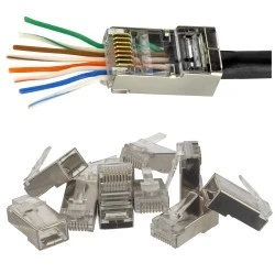Ośmiostykowe złącza sieciowe Rj45 wykonane w systemie Pass Through.