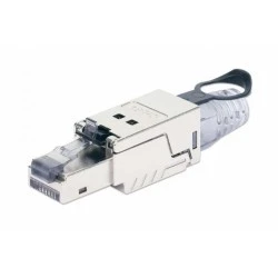 Wtyk przeznaczony do łatwego i szybkiego montażu wysokiej jakości okablowania, ekranowanie STP, do litego drutu i linki, pozłacane styki, metalowa obudowa