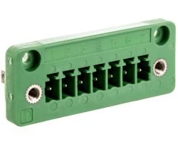 Obudowy przepustów, przekrój znamionowy: 1,5 mm², kolor: zielony, prąd znamionowy: 8 A, napięcie znamionowe (III/2): 160 V, powierzchnia styku: cynowy, rodzaj styku: Styk męski, liczba potencjałów: 7, Liczba rzędów: 1, Liczba pinów na rząd: 7, ilość przyłączy: 7, rodzina produktów: DFK-MC 1,5/..-GF, wymiar rastra: 3,81 mm, rodzaj przyłącza: Lutowane/płaskie przyłącze wtykowe, montaż: montaż bezpośredni, układ pinów: Liniowe ustawienie kołków, długość pinu [P]: 9,4 mm, system wtyków: MINI COMBICON, Ustawienie przodu wtyku: Standard, Rygiel: Śruby mocujące, rodzaj mocowania: Kołnierz gwintowany, rodzaj opakowania: zapakowany w karton