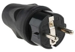 Wtyk RS Pro Black Rubber Schuko. Ta wtyczka typu F Schuko jest solidną i niezawodną końcówką wtykową odpowiednią do wielu zastosowań. Gumowa część ciała zapewnia ochronę przed upadkiem i wytrzymałością, gwarantując zaufanie i niezawodność w miarę upływu czasu. Standardowy format 2-stykowy jest wyposażony w złącze stykowe 2P+E ułatwiające instalację na kablu. Funkcje. Czarna powłoka gumowa 16A z bezpiecznikiem 250 V znamionowe -20°C (-4°F) do +80°C (+176°F) temperatury pracy Końcówki śrub. Wtyczki mogą być używane w różnych zastosowaniach, w tym w urządzeniach gospodarstwa domowego, takich jak pralki, lodówki i kuchenki mikrofalowe, jak również przedłużacze, elektronarzędzia, lampy i wiele innych. Zawsze upewnić się, że wtyczka o odpowiednim udźwigu jest używana i instalowana przez wykwalifikowanego elektryka.