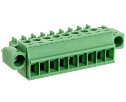 Złącze do PCB, przekrój znamionowy: 1,5 mm², kolor: zielony, prąd znamionowy: 8 A, napięcie znamionowe (III/2): 160 V, powierzchnia styku: cynowy, rodzaj styku: Gniazdo, liczba potencjałów: 9, Liczba rzędów: 1, Liczba pinów na rząd: 9, ilość przyłączy: 9, rodzina produktów: MC 1,5/..-STF, wymiar rastra: 3,5 mm, rodzaj przyłącza: Zacisk śrubowy z tuleją zaciskową, Kształt gniazda śruby: L Nacięcie wzdłużne, kierunek przyłączania przewód/płytka: 0 °, system wtyków: MINI COMBICON, Rygiel: Śruby mocujące, rodzaj mocowania: Kołnierz śrubowy, rodzaj opakowania: zapakowany w karton