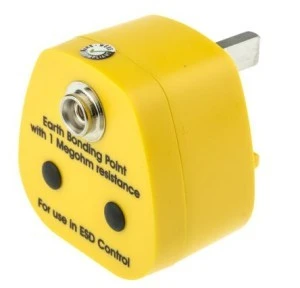 Obsługa zgodności programów sterowania ESD S20.20 i EN 61340-5-1. Zatyczki do uziemienia RS Pro - Wielka Brytania. Wtyki do uziemienia RS Pro odpowiednie do gniazd UK 13A. Dostępne opcje to: ; 392-157 392-157 - brytyjska wtyczka do uziemienia antystatycznego ; 287-7537 287-7537 - wtyk uziemiający UK, 1x10 mm kołek ; 298-3890 298-3890 - brytyjska wtyczka z uziemieniem, 1x10mm szpilka 2 x gniazdo bananowe ; 298-3884 298-3884 - wtyk uziemiający UK, 2x2BA POST ; 298-3878 298-3878 - wtyk połączenia masowego UK, 3x10 mm sworzeń Wtyczka uziemienia (EBP) została zaprojektowana w celu zapewnienia wspólnego punktu uziemienia z uziemieniem ochronnym w obszarze chronionym przed wyładowaniami elektrostatycznymi (EPA). Wtyczka pasuje do gniazda zasilania sieciowego, co umożliwia podłączenie tylko przewodu uziemiającego. Zamiast styków pod napięciem i neutralnych znajdują się formowane plastikowe kołki izolujące, które umożliwiają dodatnie umieszczenie w gnieździe. Złącza znajdujące się z przodu wtyczki są dostępne do podłączenia za pomocą przewodów uziemiających do różnych elementów EPA. RS Pro oferuje szeroką gamę akcesoriów uziemiających ESD, w tym wtyczki łączące, skrzynki łączące, wsporniki łączące, gniazda i przewody, a także wiele innych, które pomagają wyeliminować nagromadzenie wyładowań statycznych, które mogą stanowić zagrożenie dla wrażliwych na wyładowania elektrostatyczne komponentów lub urządzeń. Charakterystyka i zalety:. ;ul> ;li>Wtyki uziemiające UK - przeznaczone do standardowych gniazdek sieciowych w Wielkiej Brytanii ;/li> ;li>Łatwe podłączenie do uziemienia sieciowego dla operatorów i innych elementów EPA ;/li> ;li>Do użytku w fabryce i w terenie ;/li> ;li>Formowany z tworzywa ABS ;/li> ;/ul>. W zestawie opornik 1 megaomów. Typowe zastosowania. Akcesoria uziemiające ESD stanowią część systemu bezpieczeństwa w miejscu pracy, który monitoruje i/lub eliminuje gromadzenie się lub rozładowywanie ładunków elektrostatycznych, które mogą stanowić zagrożenie dla podzespołów elektrycznych, takich jak dyski twarde komputera. Wtyki uziemiające (zwane także wtykami uziemiącymi) zostały zaprojektowane jako bezpieczny i łatwy sposób na utworzenie skutecznego punktu uziemienia ESD dla produktów ESD i sprzętu testowego ESD w obszarze chronionym przed ESD (EPA). Odpowiedzi na często zadawane pytania:. Do czego służą akcesoria uziemiające ESD? Akcesoria uziemiające ESD (wyładowania elektrostatyczne) są elementami w pętlach uziemiających ESD. Akcesoria te są używane w miejscach pracy, gdzie wrażliwe urządzenia elektroniczne muszą być zabezpieczone przed elektrycznością statyczną lub w których istnieje niebezpieczeństwo zapalenia się łatwopalnych cieczy lub gazów. Zabezpieczenie antystatyczne zapewnia uziemienie elektryczne. Akcesoria uziemiające to elementy, które mogą być wymagane jako część całego systemu uziemienia ESD. Często są one używane do łączenia i łączenia mat zabezpieczających przed ESD, monitorów ciągłych ESD, pasków na nadgarstek, osłon na buty ochronne ESD i innych elementów odzieży lub powierzchni bezpiecznych przed ESD.