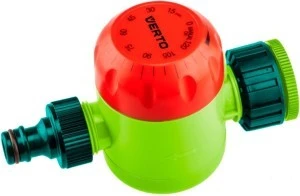 Wyłącznik czasowy VERTO (nr ref. 15G750) z możliwością przekręcania tarczy w dowolną stronę bez ryzyka uszkodzenia mechanizmu pozwala na ręczne ustawienie czasu nawadniania do maksymalnie 120 minut. Wyłącznik czasowy można podłączyć do kranu 3/4".