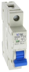 Prezentowany produkt to wyłącznik nadprądowy marki LC TEC. Jego adaniem jest odłączenie zasilania w przypadku zwarcia lub przeciążenia instalacji elektrycznej. Przepływ prądu o wartości wyższej niż wartość prądu znamionowego wyłącznika powoduje jego wyłączenie. Chroni to osoby przed porażeniem a instalację elektryczną przed zniszczeniem.