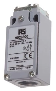 IEC 947-5-1, EN 60 947-5-1. RS numery katalogowe 902-6922 i 902-6913 to plastikowa obudowa. RS przełączniki krańcowe serii M20 AM F/T. Łatwe w użyciu elektromechaniczne wyłączniki krańcowe oferują specjalne właściwości i specjalne urządzenia do detekcji o takich cechach, jak obecność/brak, położenie i ograniczenie ruchu, przemieszczanie się i zliczanie obiektów. Te wyłączniki krańcowe są wykonane ze stopu cynku (Zamack) i posiadają stopień ochrony IP 66 lub obudowę plastikową IP65. Widoczne działanie Możliwość przełączania silnych prądów - konwencjonalny prąd cieplny 10 A. Styki izolowane elektrycznie Precyzyjne punkty działania - spójność Odporność na zakłócenia elektromagnetyczne Różne głowice robocze, zwykły tłoczek, ruchomy trzpień, dźwignia rolkowa Znormalizowane wymiary zgodnie z EN 50047 i EN 50041 Obudowa metalowa do IP66 Plastikowa obudowa w obudowie IP65 podwójna izolacyjna. Metalowe przełączniki ograniczające IP66 i plastikowe elementy o stopniu ochrony IP65
