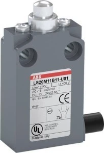 Wyłącznik krańcowy LS20M11B11 o szerokości 30mm. Wykonany z materiału samogasnącego wzmocnionego włóknem szklanym (UL-V0). Wyposażony w regulowany siłownik z dźwignią rolkową. Przeznaczony do wykrywania pozycji elementów maszyn. Stopień ochrony IP65.