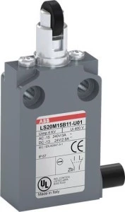 Wyłącznik krańcowy LS20M15B11 o szerokości 30mm. Wykonany z materiału samogasnącego wzmocnionego włóknem szklanym (UL-V0). Wyposażony w regulowany siłownik z dźwignią rolkową. Przeznaczony do wykrywania pozycji elementów maszyn. Stopień ochrony IP65.