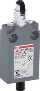 Wyłącznik krańcowy LS21M15B11 o szerokości 30mm. Wykonany z materiału samogasnącego wzmocnionego włóknem szklanym (UL-V0). Wyposażony w regulowany siłownik z dźwignią rolkową. Przeznaczony do wykrywania pozycji elementów maszyn. Stopień ochrony IP65.