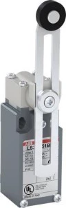 LS33M51B11 to standardowy wyłącznik krańcowy o szerokości 30 mm wykonany ze stopu , z 2 otworami montażowymi u góry, 1 wejściem kablowym ISO M20x1,5 od dołu, regulowanym siłownikiem z plastikową dźwignią rolkową (Ř18 mm) i 1 stykiem NO + 1 zestyk migowy NC (typ Zb).