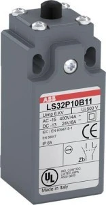 Wyłącznik krańcowy LS33P10B11 o szerokości 30mm. Wykonany z materiału samogasnącego wzmocnionego włóknem szklanym (UL-V0). Wyposażony w regulowany siłownik z dźwignią rolkową. Przeznaczony do wykrywania pozycji elementów maszyn. Stopień ochrony IP65.