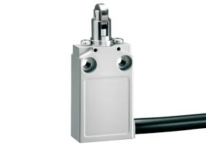 Wyłącznik krańcowy trzpień wciskany z rolką, rolka metalowa, rolka w osi korpusu przesunięta o 90o