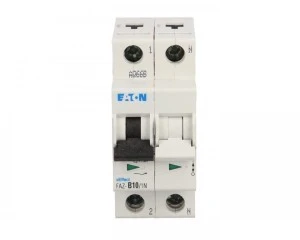 Wyłącznik nadprądowy służy do ochrony instalacji elektrycznej przed przeciążeniami lub zwarciem. Wykorzystywany jest w przemyśle oraz w budynkach o charakterze komercyjnym i mieszkaniowym. Model z serii FAZ posiada dwa bieguny, jego znamionowa zwarciowa zdolność łączeniowa zgodnie z normą EN 60898 wynosi 10 kA. Produkt pracuje przy częstotliwości 50/60 Hz. Jego stopień ochrony wynosi IP20 dlatego powinien być instalowany jedynie wewnątrz budynków. Istnieje możliwość dodatkowego wyposażenia wyłącznika o elementy z nim współpracujące. Produkt ten przeznaczony jest do wbudowania na głębokości 71 mm, dopasowany jest do montażu na standardowej szynie TS35. Wyłącznik wyróżnia się trzecią klasą ograniczenia energii, pracuje przy napięciu sieciowym 230 V. Został wykonany z wysokiej klasy materiałów, dzięki czemu jest wytrzymały i odporny na uszkodzenia. Producentem wyłącznika jest firma EATON ELECTRIC, dostawca nowoczesnych urządzeń z zakresu automatyki przemysłowej, aparatury sygnalizacyjnej, łączeniowej i zabezpieczającej.
