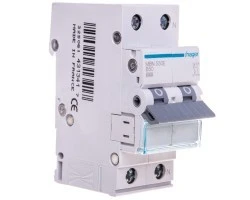 Wyłącznik nadprądowy dwubiegunowy Hager z serii MBN B50. Łatwy montaż na szynie. Wytrzymała konstrukcja obudowy nie uszkadza się przy montażu. Szeroki zakres stosowania dzieki możliwości pracy w temp od -25 do 60 °C. Duża wytrzymałość mechaniczna 20.000 i elektryczna 4.000 cykli. Zdecydowanie jeden z lepszych produktów w swojej cenie.