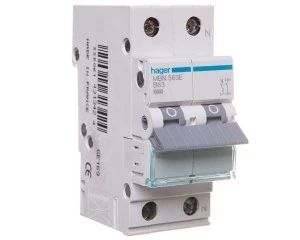 Wyłącznik nadprądowy dwubiegunowy Hager z serii MBN B63. Łatwy montaż na szynie. Wytrzymała konstrukcja obudowy nie uszkadza się przy montażu. Szeroki zakres stosowania dzieki możliwości pracy w temp od -25 do 60 °C. Duża wytrzymałość mechaniczna 20.000 i elektryczna 4.000 cykli. Zdecydowanie jeden z lepszych produktów w swojej cenie.
