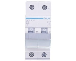 Wyłącznik nadprądowy dwubiegunowy Hager z serii MCN C13. Łatwy montaż na szynie. Wytrzymała konstrukcja obudowy nie uszkadza się przy montażu. Szeroki zakres stosowania dzieki możliwości pracy w temp od -25 do 60 °C. Duża wytrzymałość mechaniczna 20.000 i elektryczna 4.000 cykli. Zdecydowanie jeden z lepszych produktów w swojej cenie.